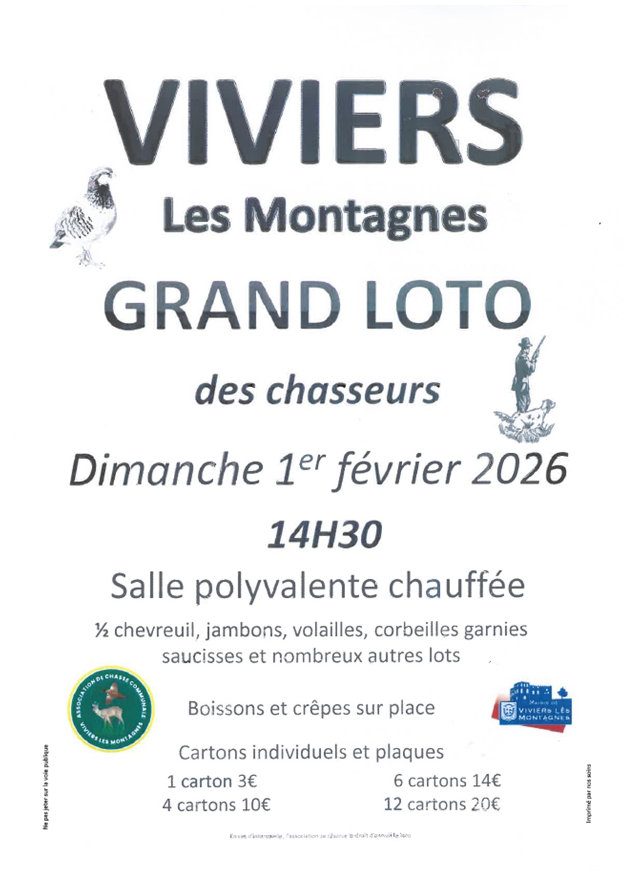 LOTO DE LA CHASSE : LE DIMANCHE 1er FÉVRIER 2026