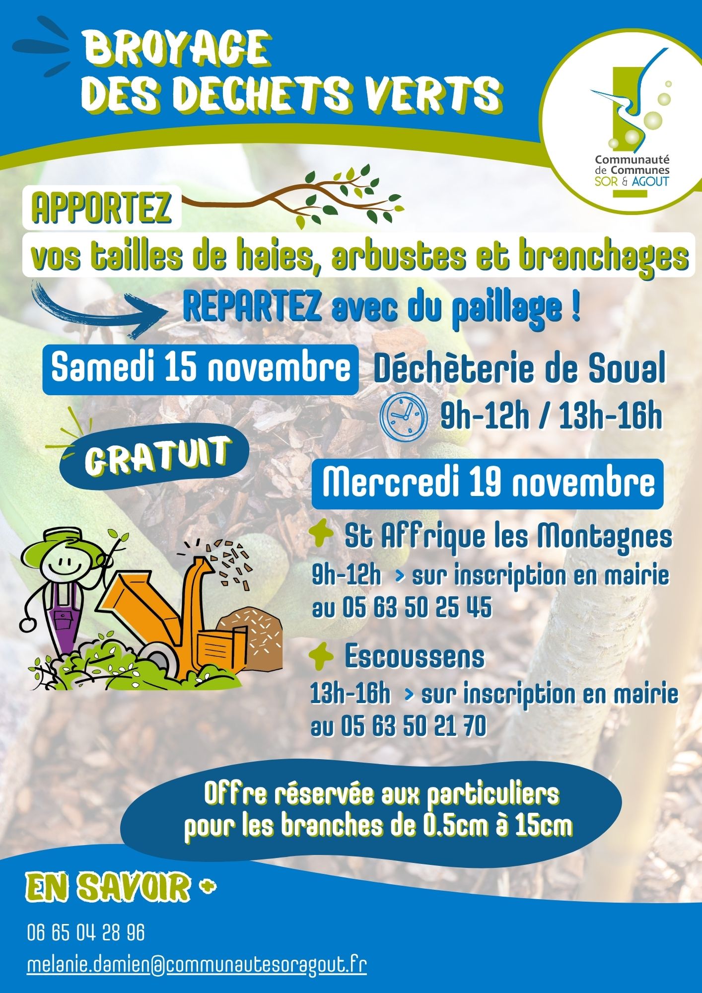 La CCSA réitère la prestation de broyage de branches sur 2 jours :